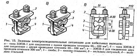 Зажим электросоединительный питающий для кабельных выводов ЗЭПВ-3 (рис. 15, в) предназначен для соединения двух проводов сечением 300 мм2.